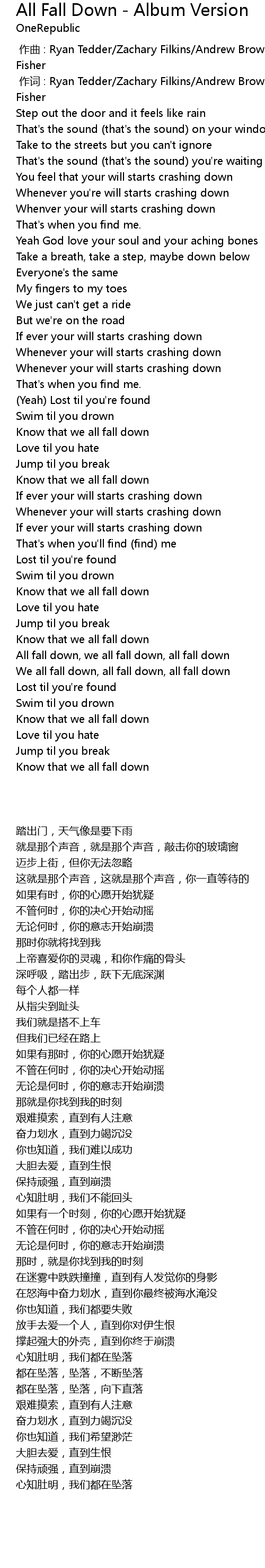 | [03:06.14] | All fall down, we all fall down, all fall down |