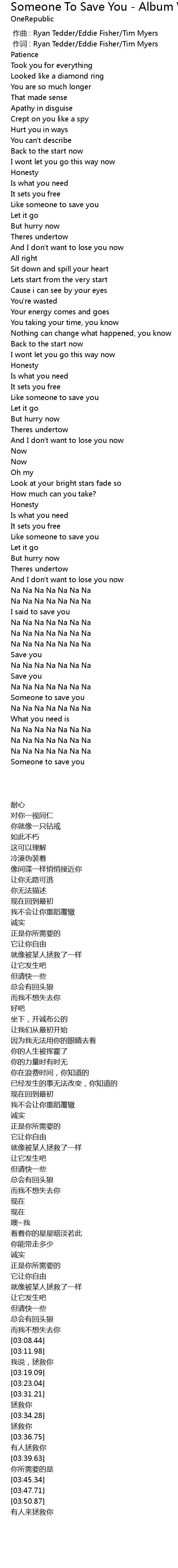 | [00:00.000] | 作曲 : Ryan Tedder/Eddie Fisher/Tim Myers |