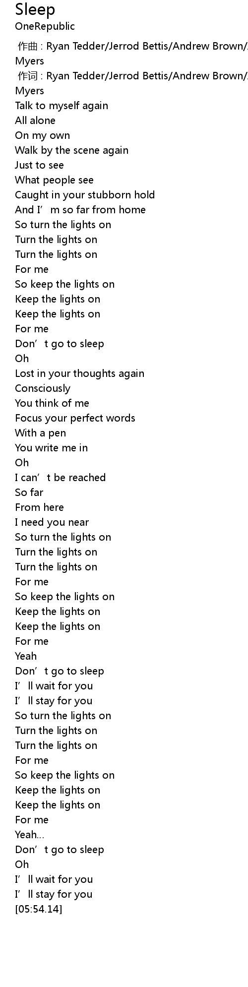 | [05:45.29] | Don' t go to sleep |