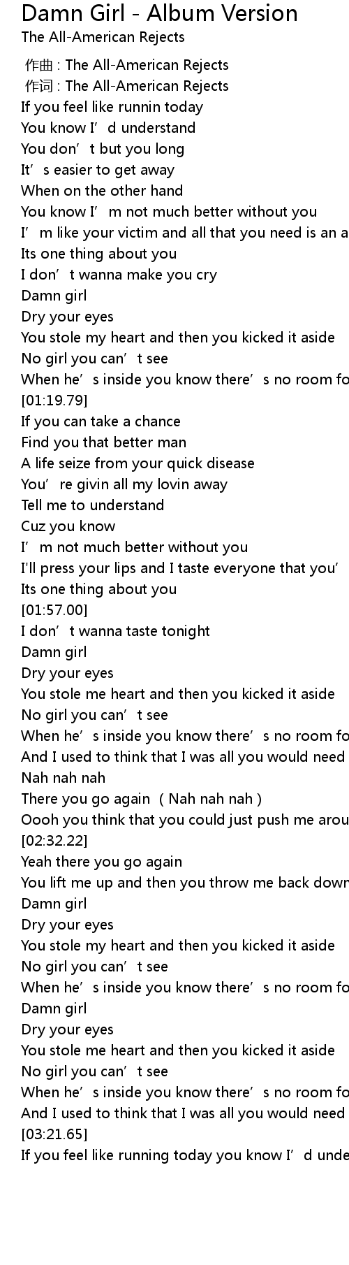 | [00:00.000] | 作曲 : The All-American Rejects |