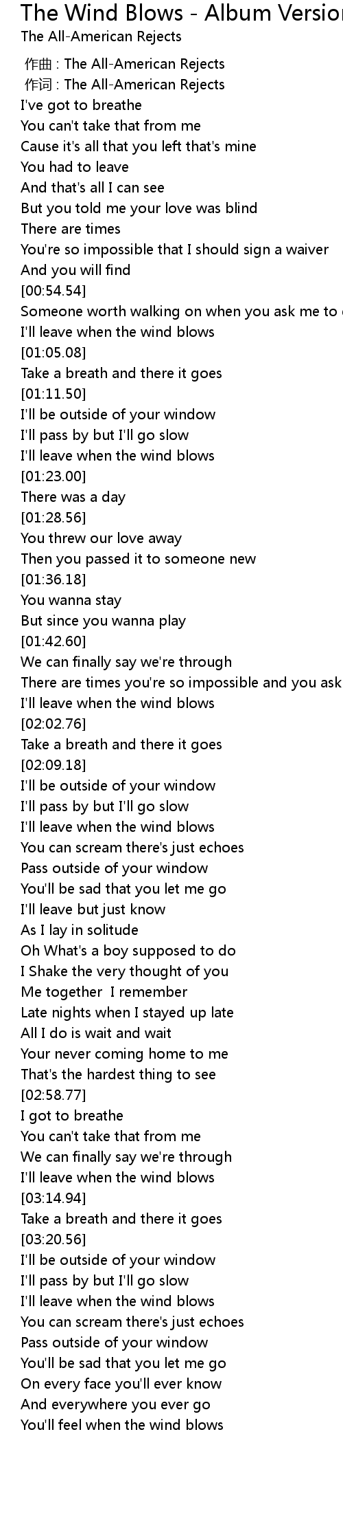 | [00:00.000] | 作曲 : The All-American Rejects |