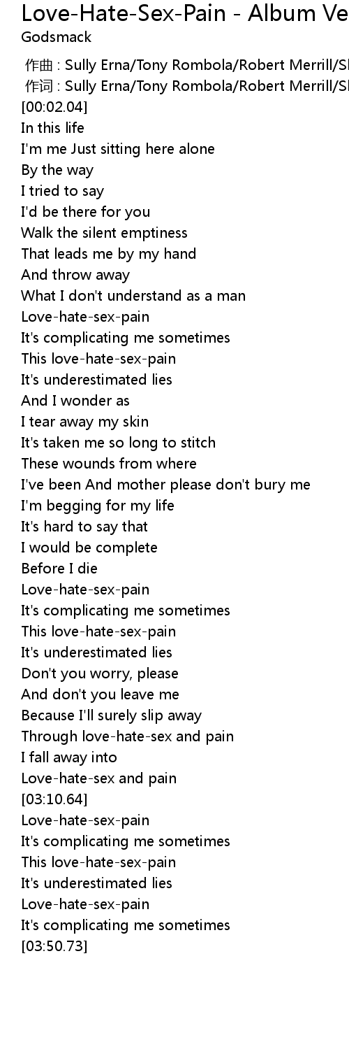 | Song | Love-Hate-Sex-Pain - Album Version |