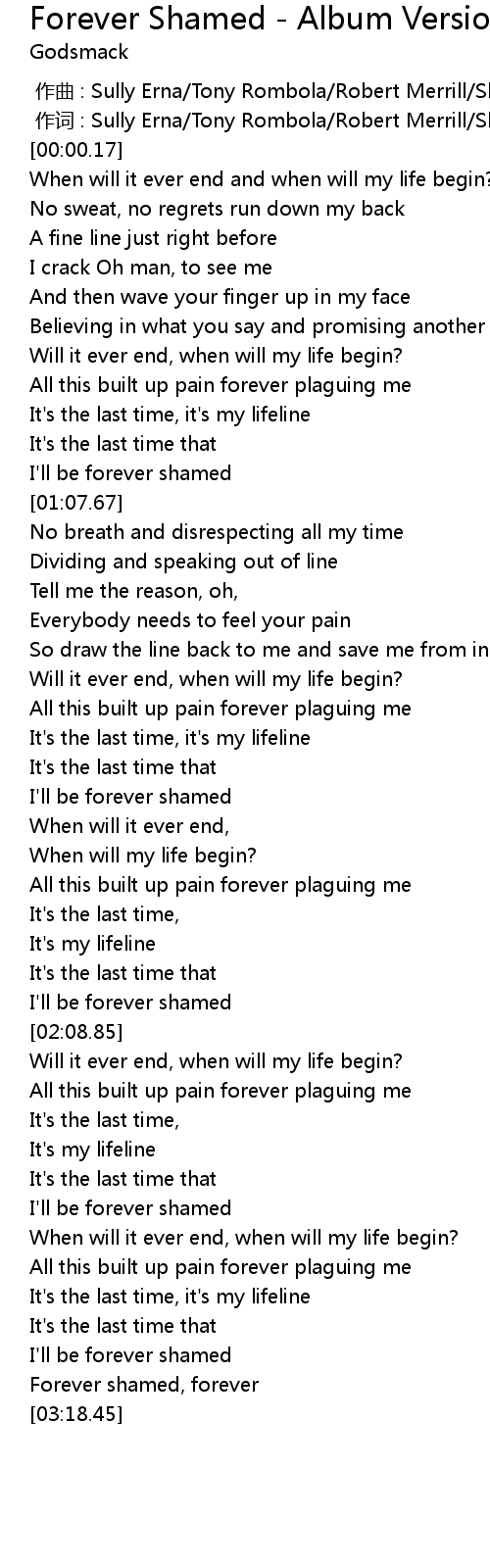 | [00:00.57] | When will it ever end and when will my life begin? |