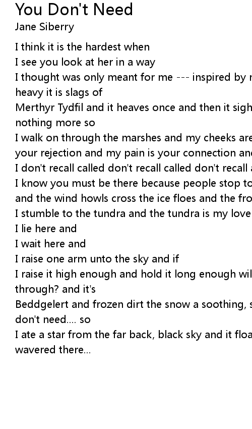I know you must be there because people stop to talk to you you don't need... and the wind howls cross the ice floes and the frozen furrows quicken as |