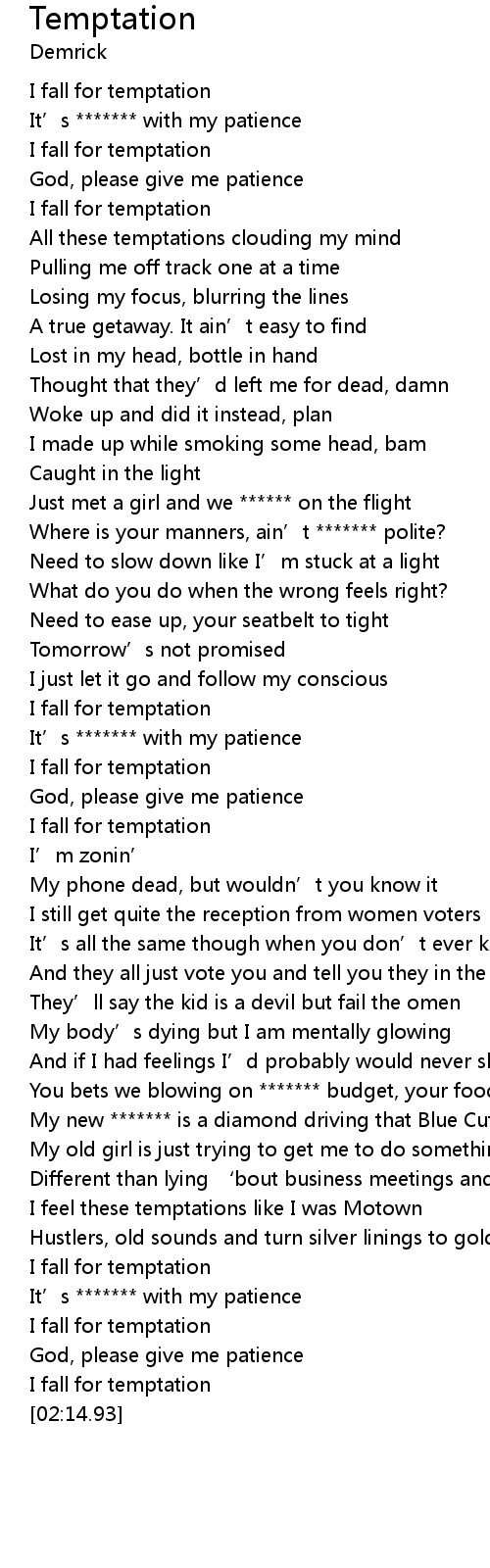 | [02:01.17] | It’s ******* with my patience |