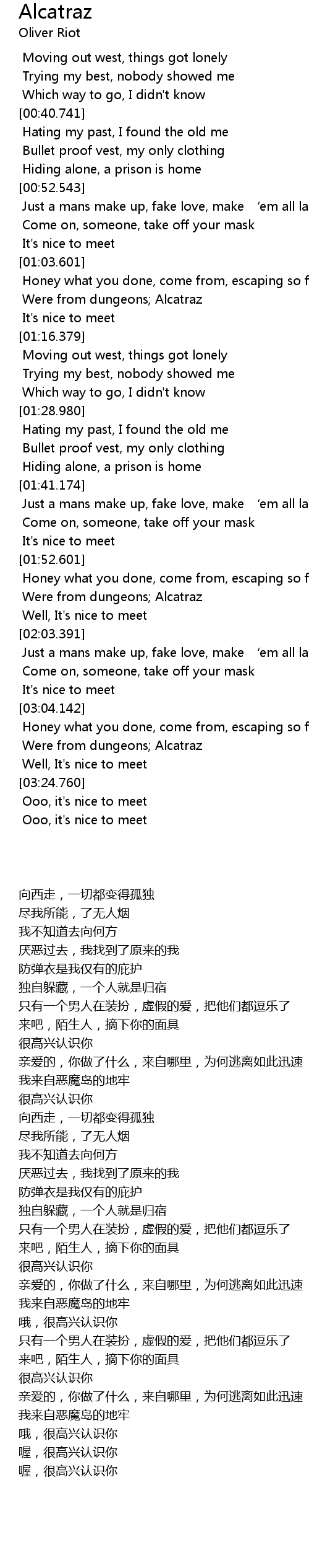 | [03:08.834] | Were from dungeons Alcatraz |