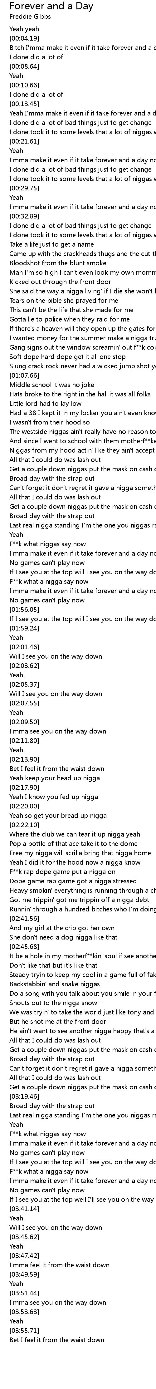 Bitch I'mma make it even if it take forever and a day now |