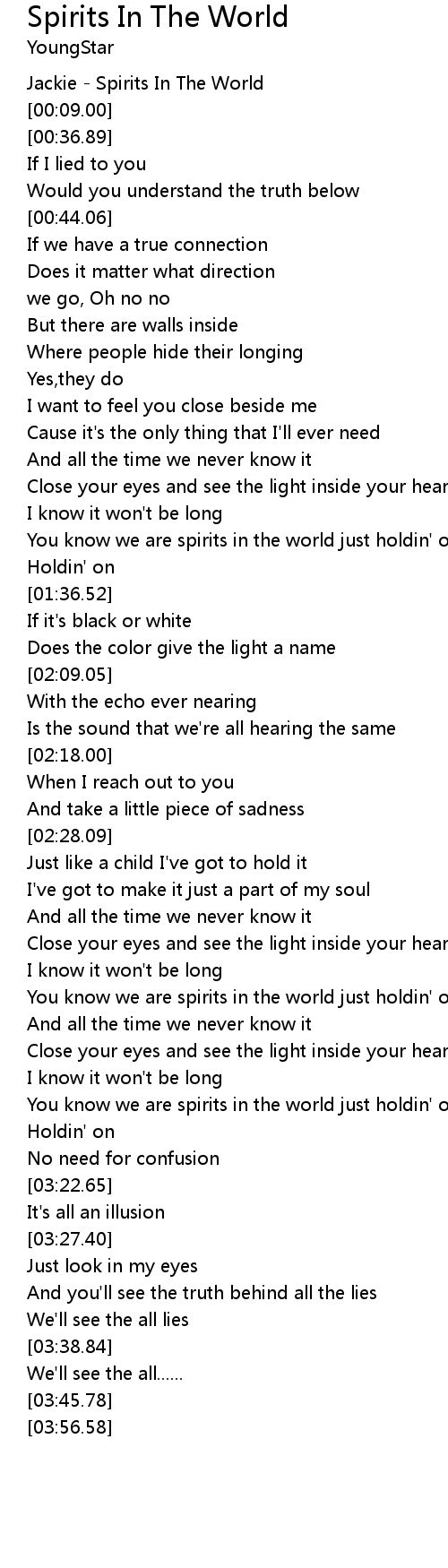 | [02:54.32] | You know we are spirits in the world just holdin' on |