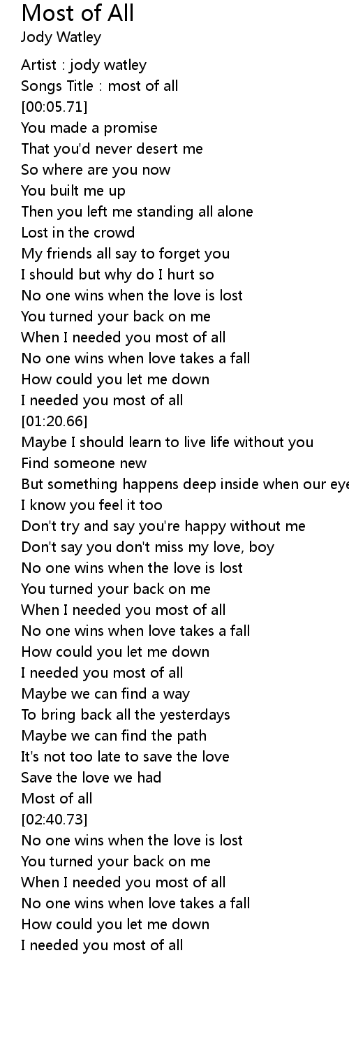 | [01:45.72] | Don' t try and say you' re happy without me |