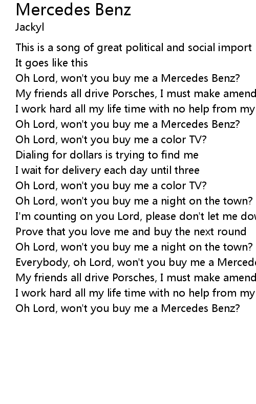 Everybody, oh Lord, won't you buy me a Mercedes Benz? |