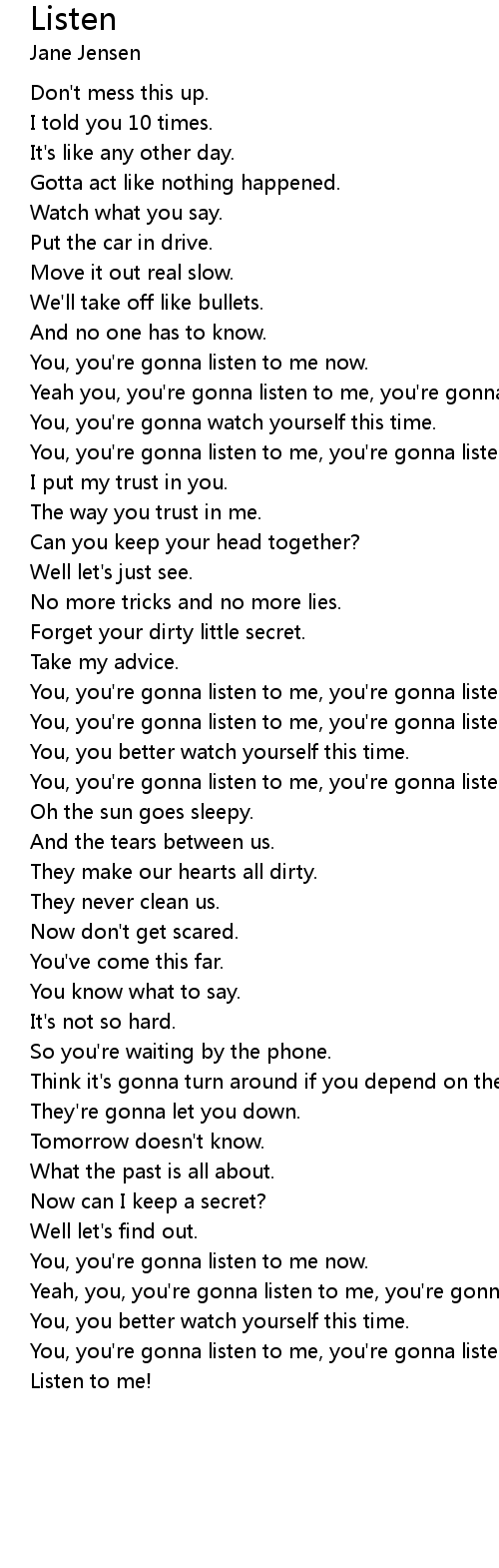 Yeah you, you're gonna listen to me, you're gonna listen to me now. |