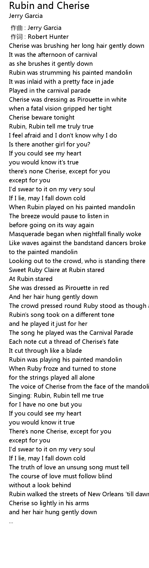 | [00:50.900] | Rubin, Rubin tell me truly true |