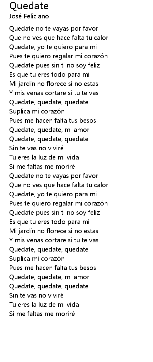 | Quedate pues sin ti no soy feliz | |