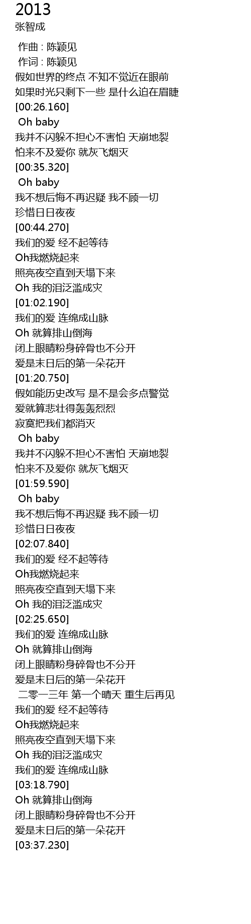 | [02:45.450] | 二零一三年 第一个晴天 重生后再见 |
