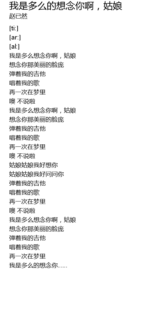 | [00:30.02] | 我是多么想念你啊,姑娘 |