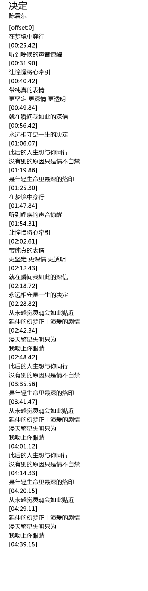| [02:23.72] | yǒng yuǎn xiāng shǒu shì yī shēng de jué dìng |