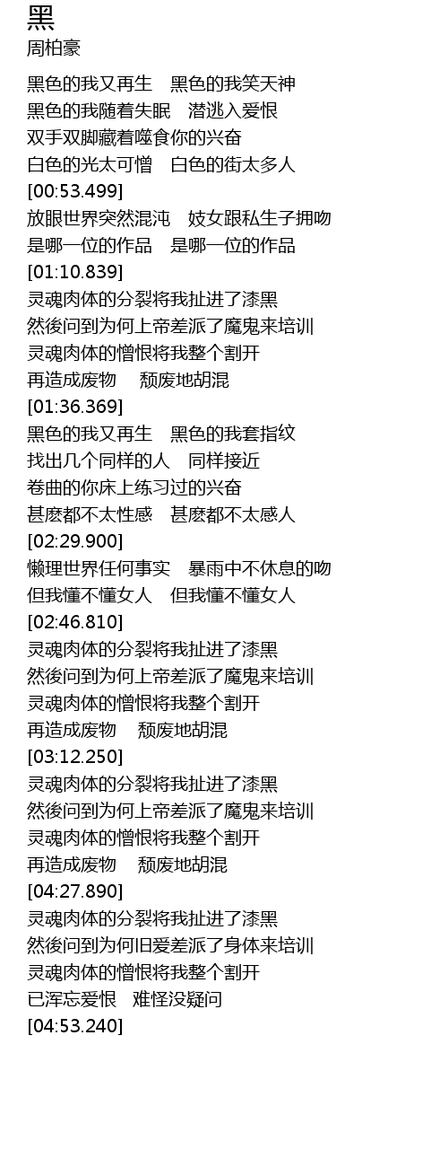 | [02:05.109] | 黑色的我又再生 黑色的我套指纹 |