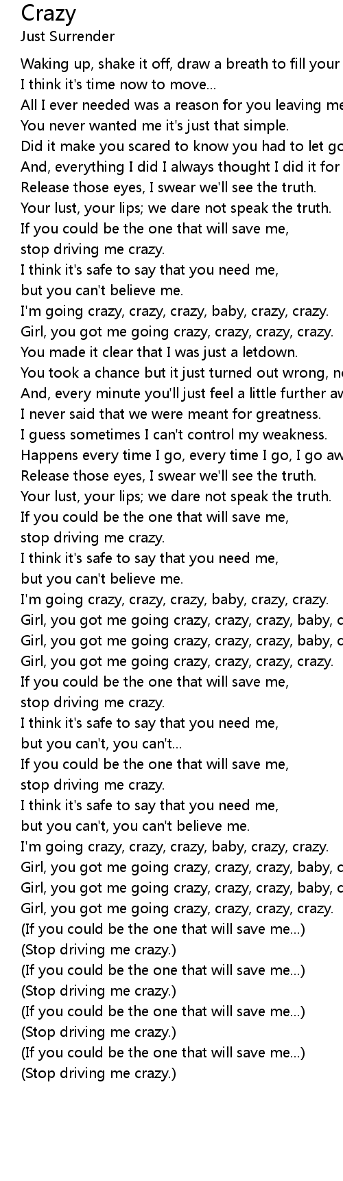 Girl, you got me going crazy, crazy, crazy, crazy. |