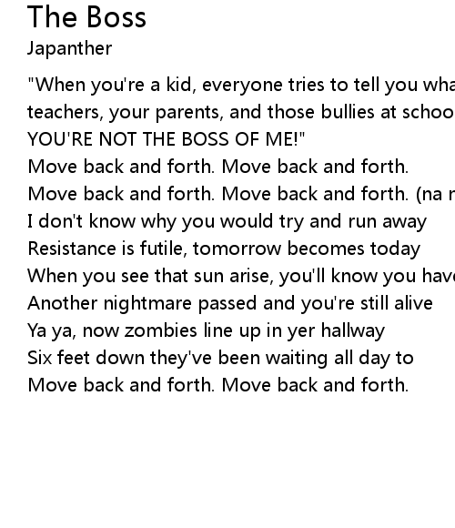 "When you're a kid, everyone tries to tell you what to do. Your bosses, your teachers, your parents, and those bullies at school. Well we say fuck that! YOU'RE NOT THE BOSS OF ME!" |