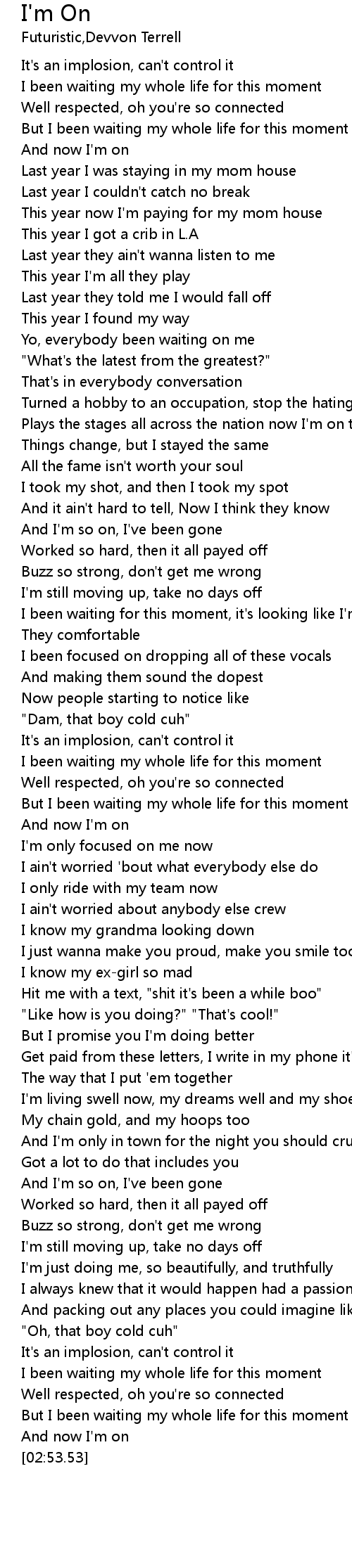 I been waiting for this moment, it's looking like I'm exploding |