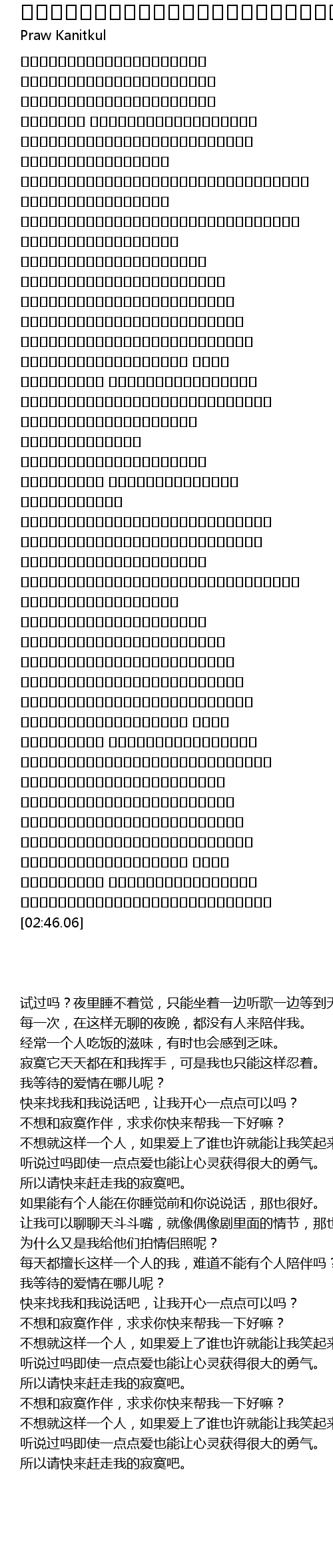 [01:43.37] ไม่อยากอยู่กับความเหงา ขอร้องนะเธอเข้ามาช่วยที