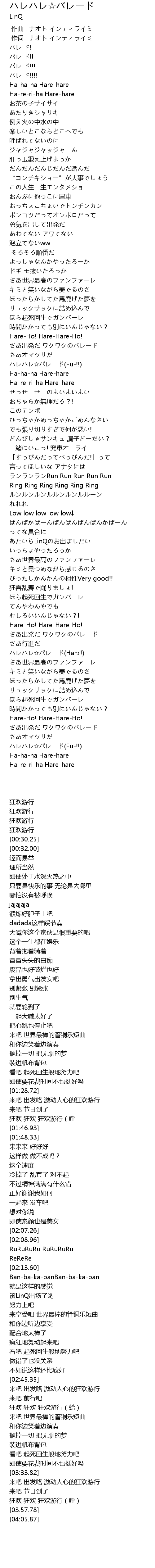 | [02:53.48] | ハレハレ☆パレード(Haっ!) |