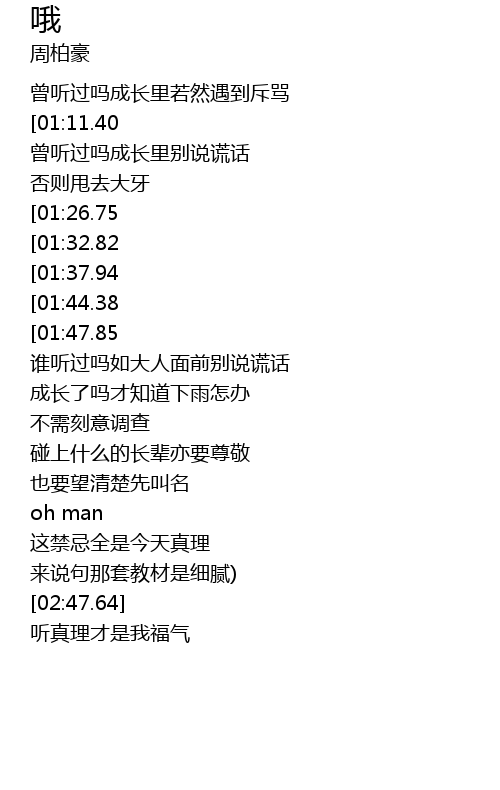 | [00:21.28] | 曾听过吗成长里别说谎话 |