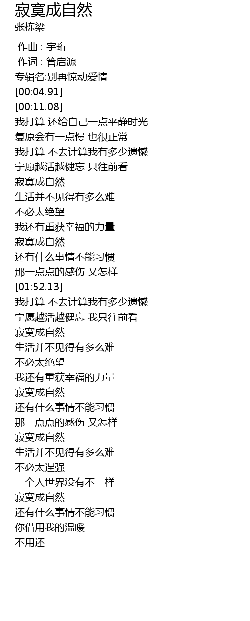 | [00:47.76] | 我打算 不去计算我有多少遗憾 |