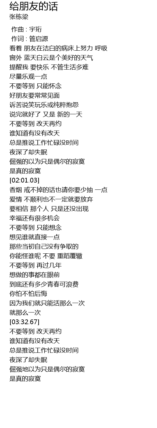 | [02:03.76] | 香烟 戒不掉的话也请你要少抽 一点 |