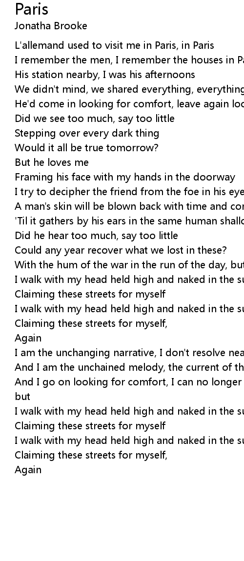 I remember the men, I remember the houses in Paris |