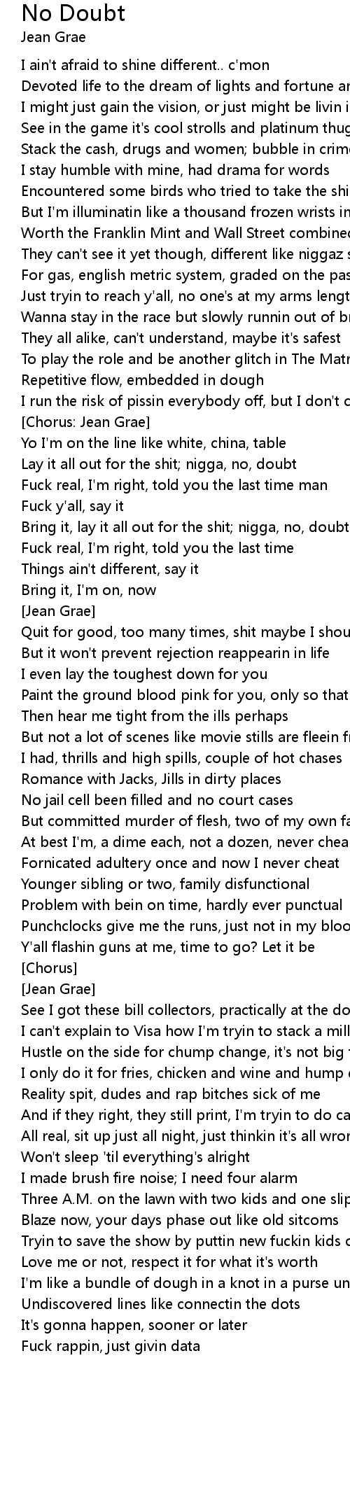 Lay it all out for the shit; nigga, no, doubt |