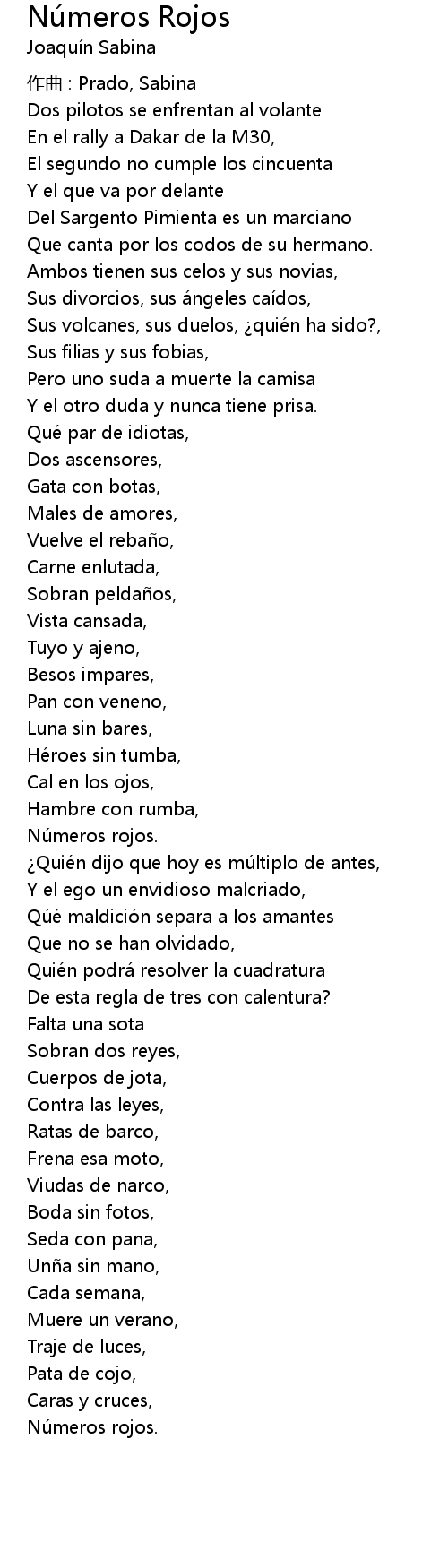 | Song | Números Rojos |