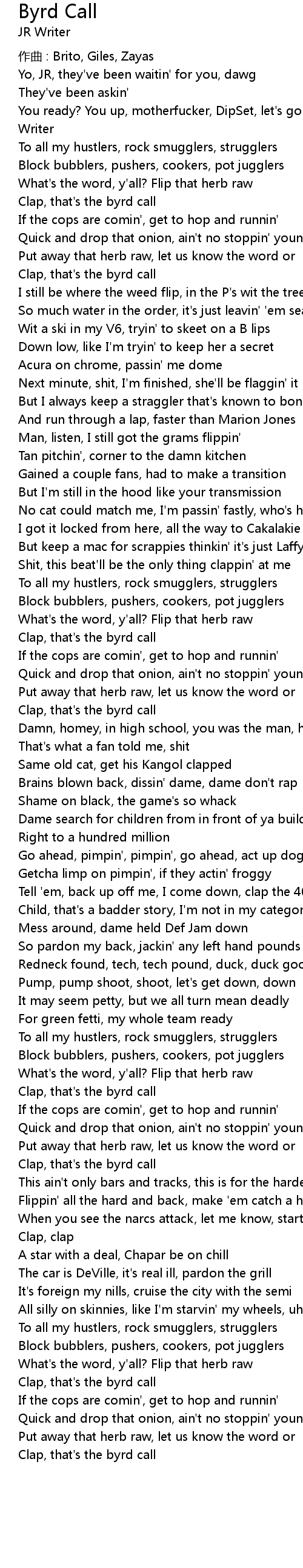 | Clap, that' s the byrd call |