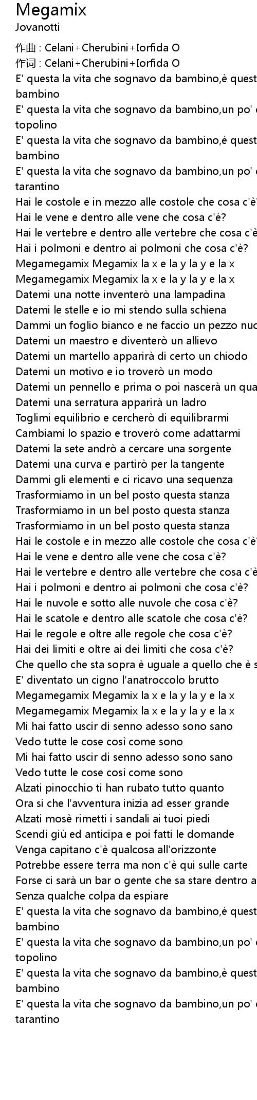 | 作词 : Celani+Cherubini+Iorfida O | |