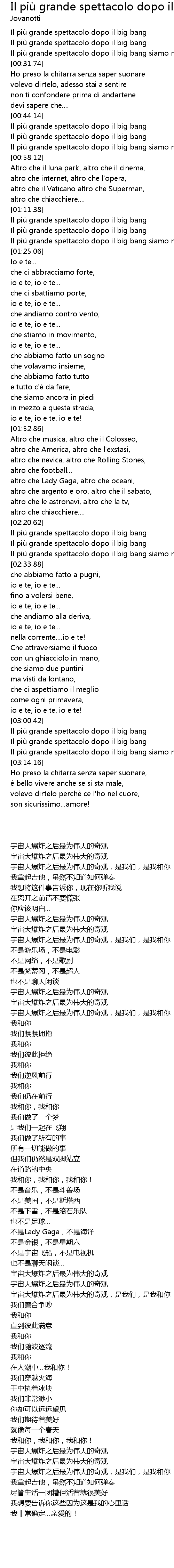 | [02:26.47] | Il più grande spettacolo dopo il big bang siamo noi...io e te! |