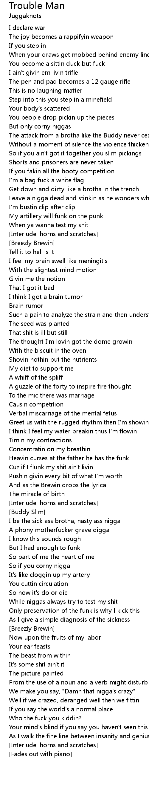[Interlude: horns and scratches] |