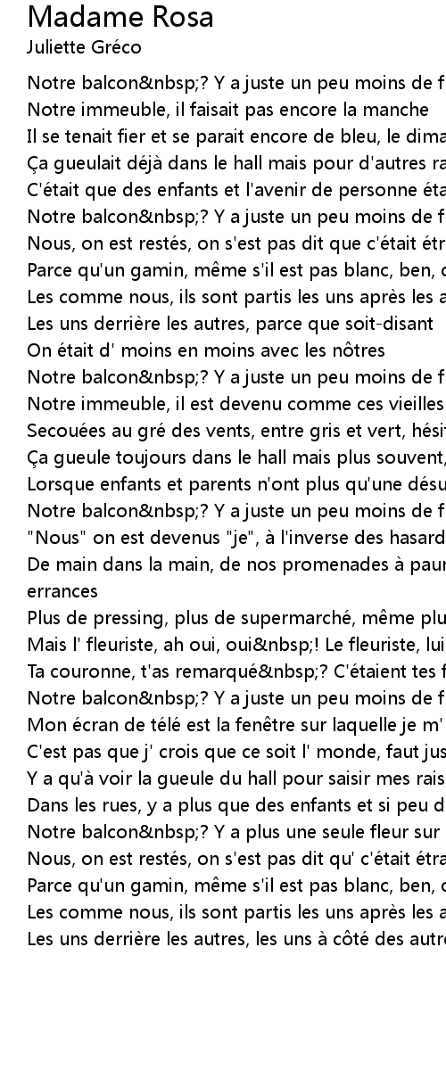 | Song | Madame Rosa |