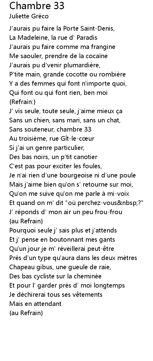 | Song | Chambre 33 |