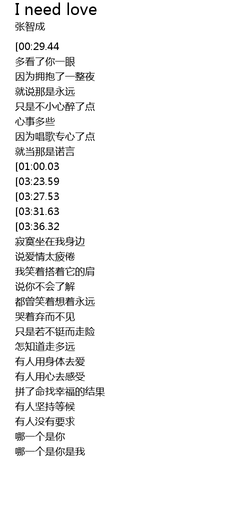 | [01:47.83][01:00.03] | Cause I Need Love |
