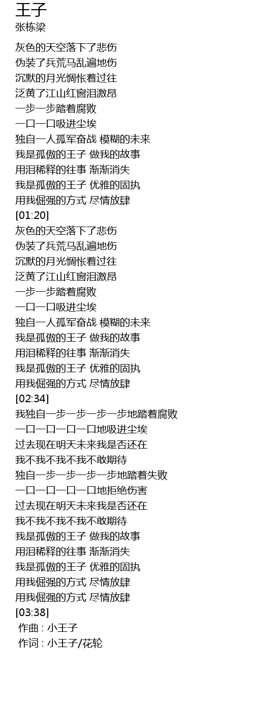 | [02:04] | 我是孤傲的王子 做我的故事 |