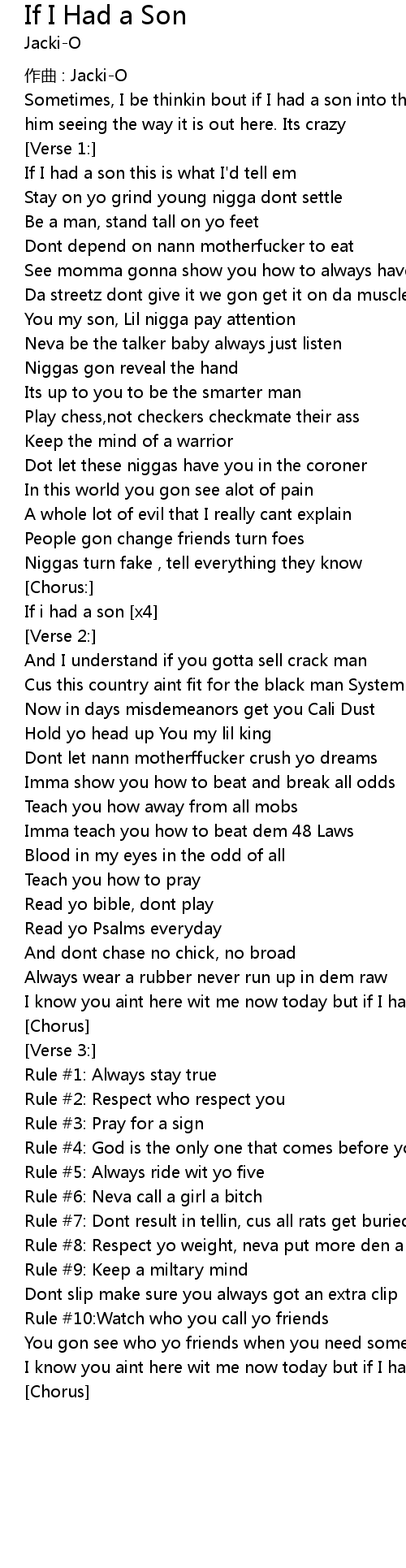| I know you aint here wit me now today but if I had you son this is wat I' d say | |