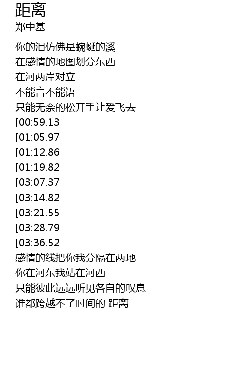 | [04:34.95] | 谁都跨越不了时间的 距离 |