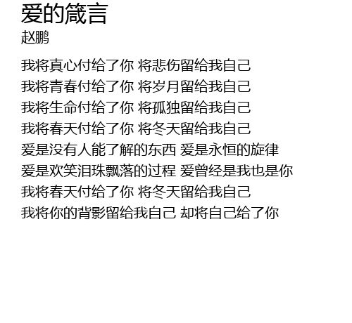 | 我将真心付给了你 将悲伤留给我自己 | |