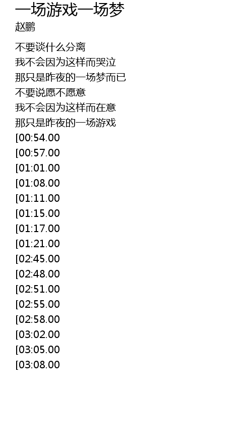 | [02:17.00][00:54.00] | 那只是一场游戏一场梦 |