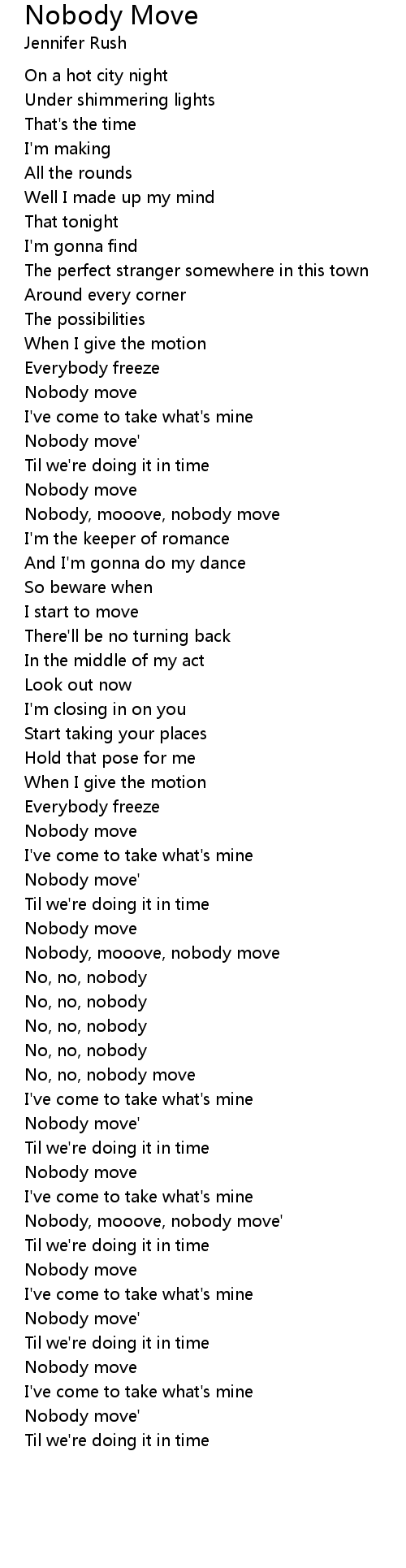 Nobody, mooove, nobody move |