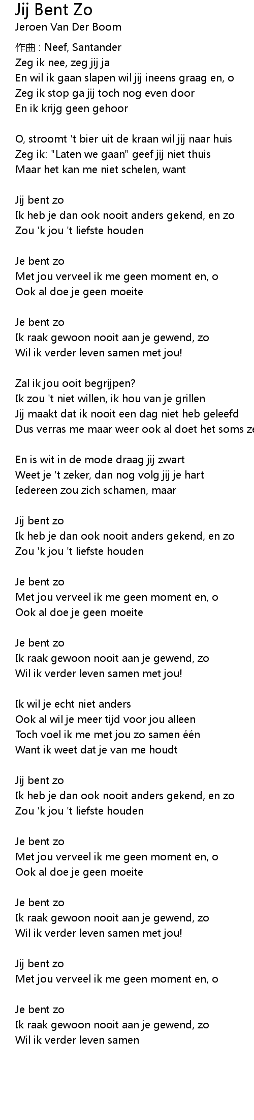 | Song | Jij Bent Zo |