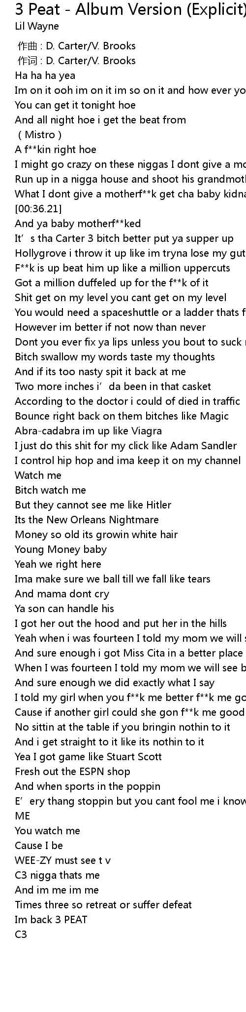 | [00:38.05] | It’s tha Carter 3 bitch better put ya supper up |