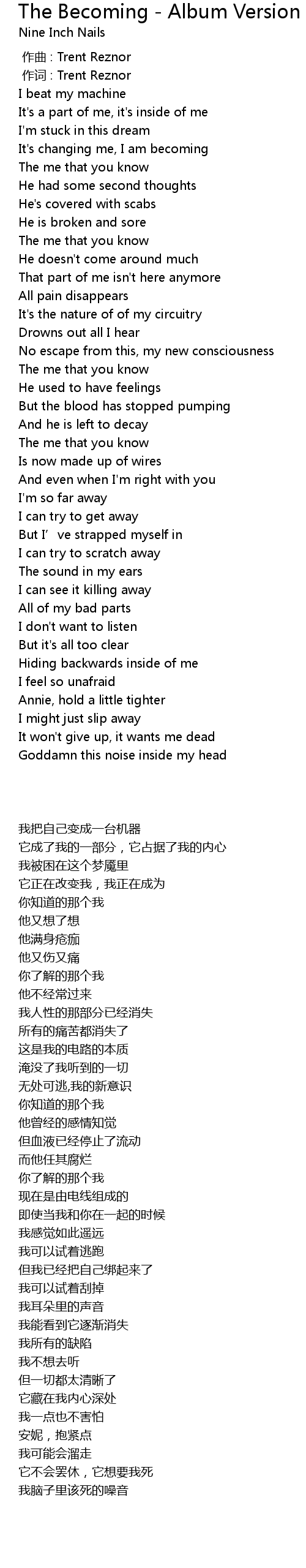 | [00:01.000] | 作词 : Trent Reznor |
