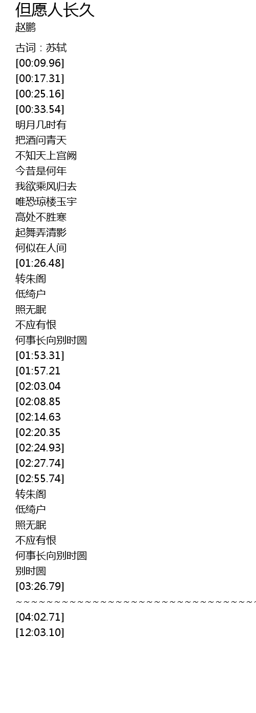 | [03:48.36][02:14.63] | 但愿人长久 |
