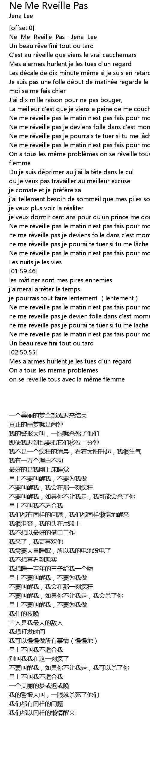 | [00:02.11] | Ne Me Rveille Pas - Jena Lee |